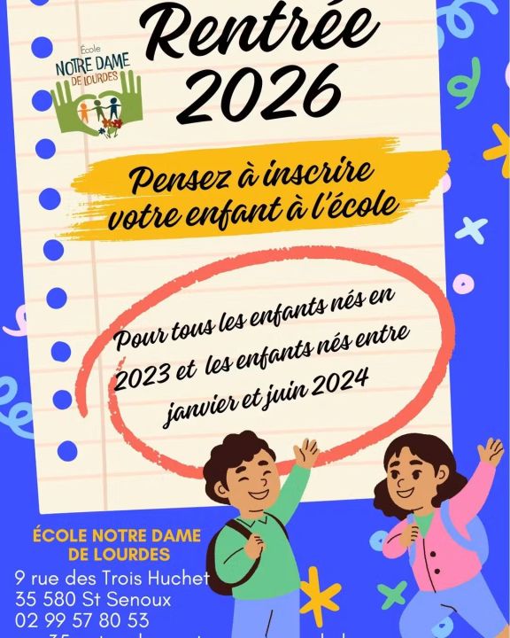 Alors pensez dès à présent à inscrire votre enfant à l'école s'il est né en 2023 (pour une rentrée en PS en septembre 2026) ou entre janvier et juin 2024 (pour une rentrée en TPS).